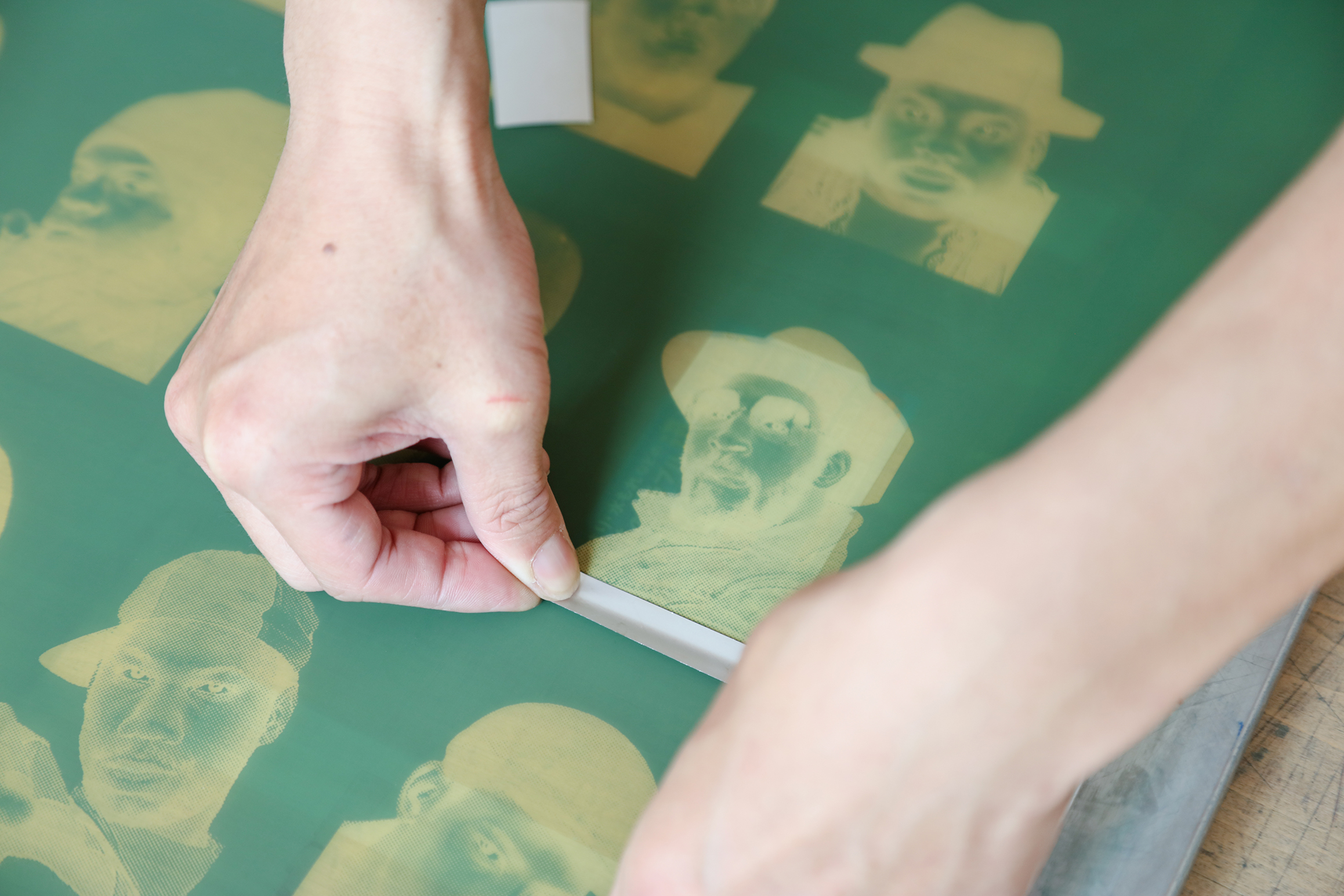 本多:今回の箔を使ったやつだったりとか、展示をする際にはシルクスクリーンの技術的に、ただ刷るだけじゃなくて、+α、こういう実験ができるというようなこともお伝えしたいんです。僕はプリンターでもあるんで、1つ新しい実験を盛り込んで、テクニカルなことをプレゼンする場になると嬉しいなって思っていて。展示を観に来てくれたアーティストの人と話したりして、「こんなこともできるんですよ」って伝えたり。