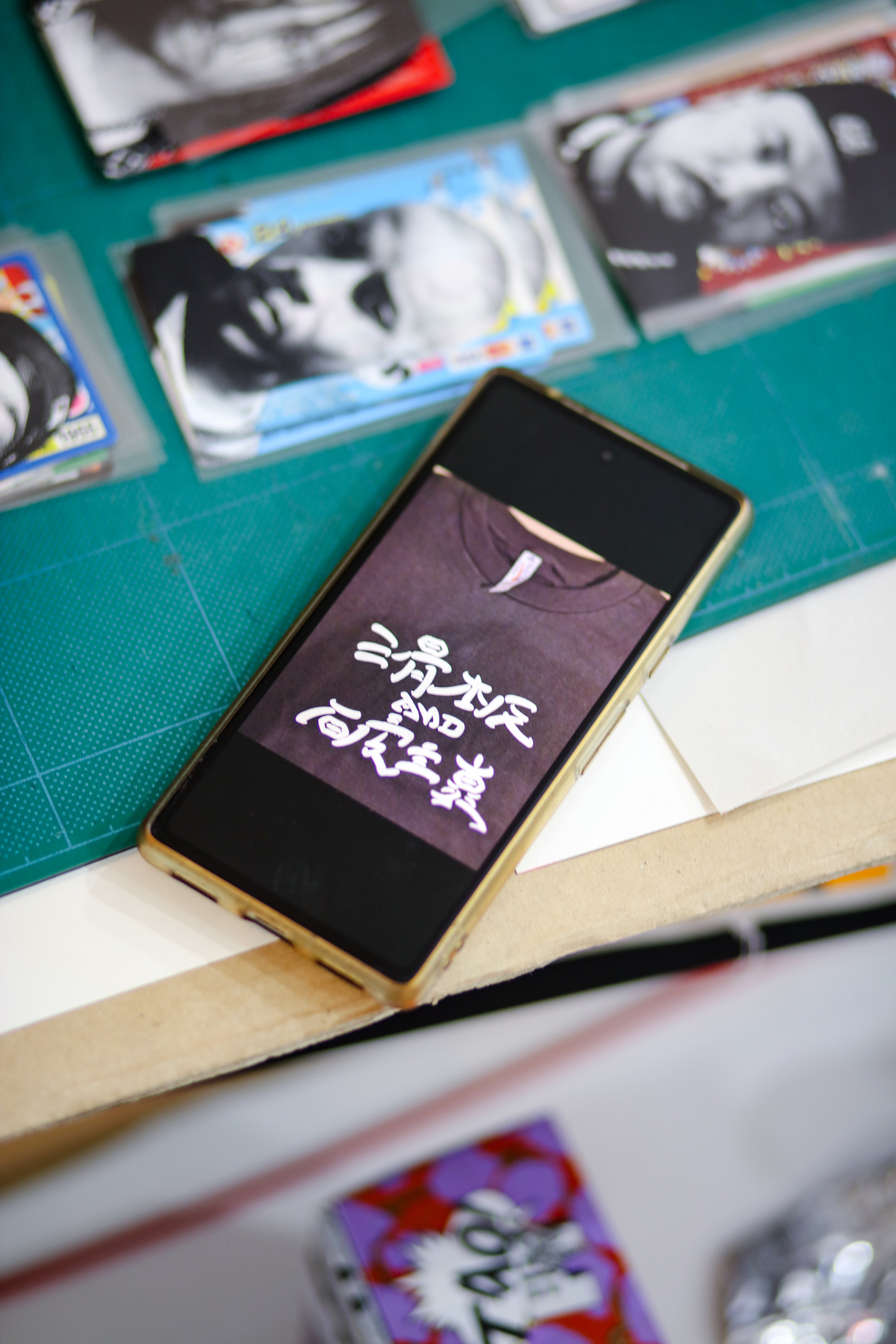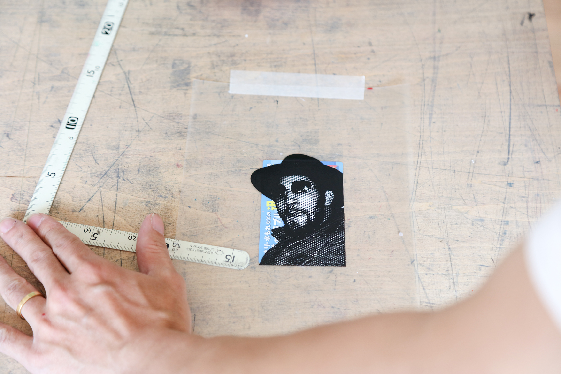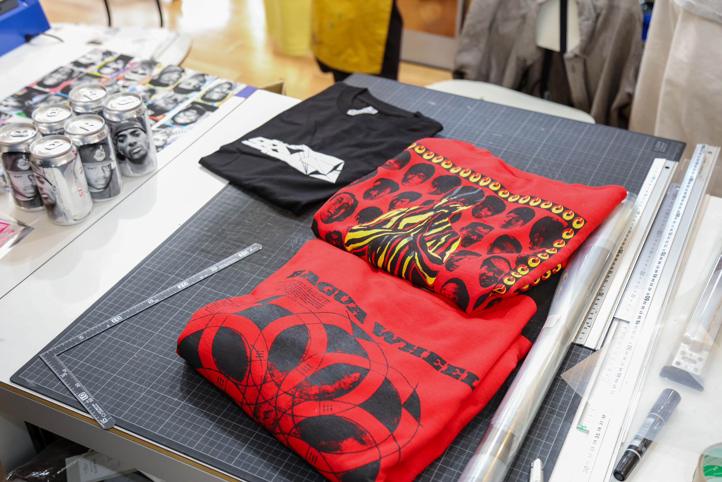 本多:そうです。既存のTシャツをコピーして、それを切って、バラバラにして、この辺の机の上で組み替えていくんです。パソコンでデザインするんじゃなくて、手作業で完成させて。