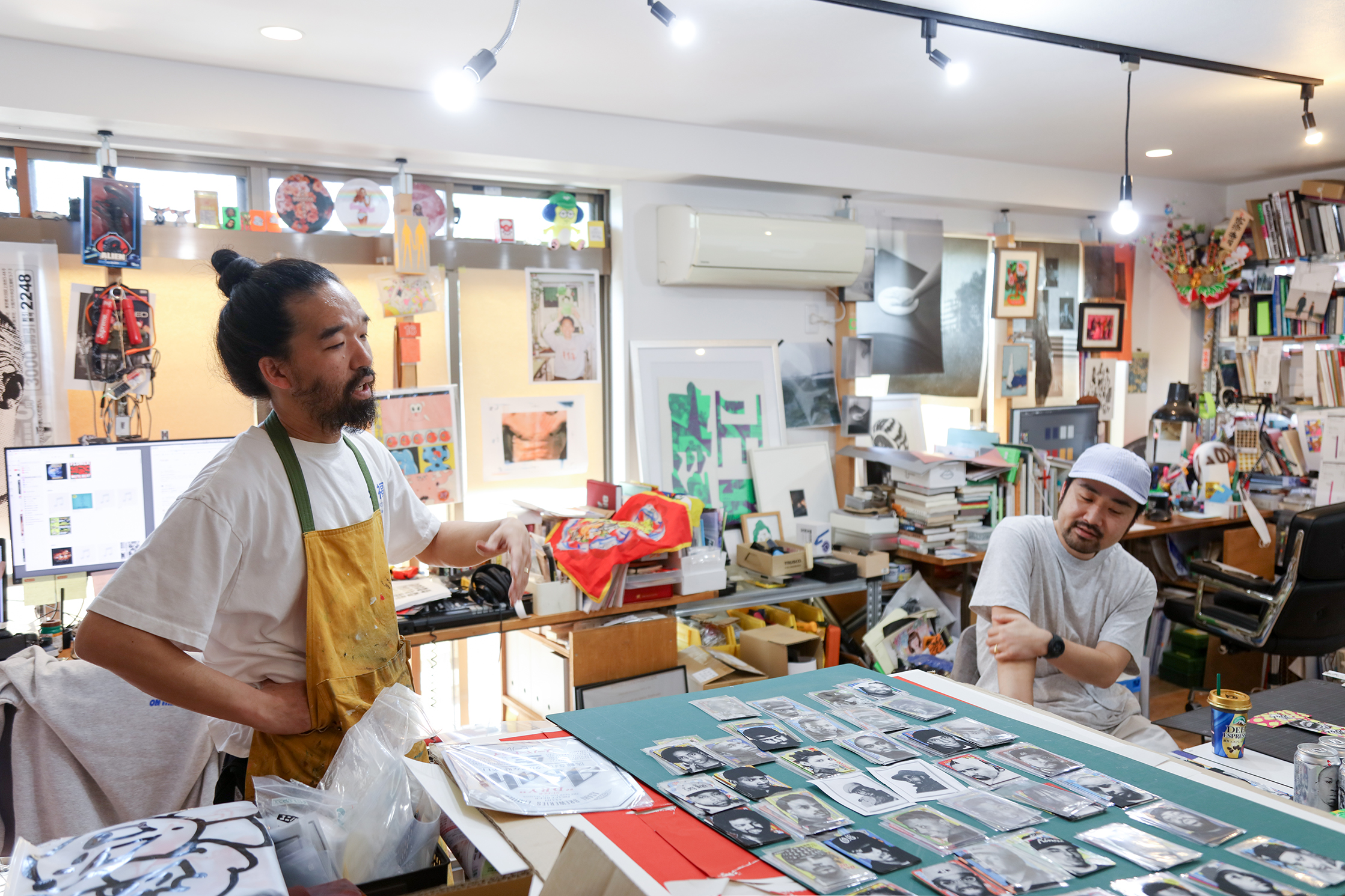 毎年”TOKYO ART BOOK FAIR”の時期になると、Instagramのフィードにブートレグのラップカード(註:90年代に主に発売された、当時のヒップホップのアーティストをテーマにしたトレーディングカード)をよく目にする人も多いのではないでしょうか。街中でポスティングされる水道管工事の広告マグネットをベースに、シルクスクリーンでアーティストの写真を刷り重ねた、このラップカードを手がけているのが、本多さんとナガシマさんによるデザインユニット、ZONSHANGです。
