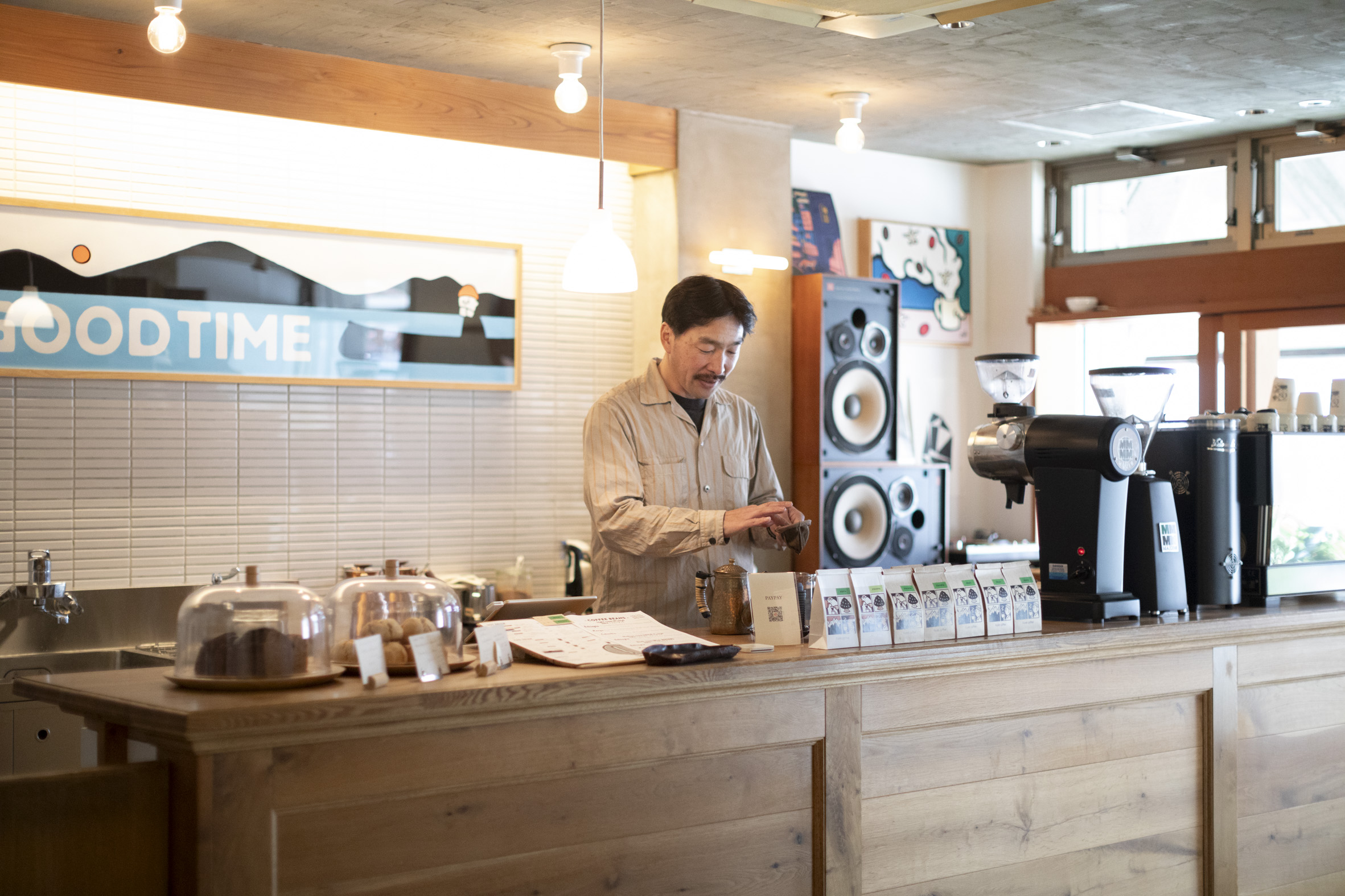 そう、家族で。一人で頑張ろうと思ってたんだけど、全然回らなくて(笑)。で、その頃、子どもが中3と中1だったのかな、取り敢えず皿洗いだけでもお願いして良い? ってお願いして(笑)。でも、そしたら全然色々接客もしてくれるし、ちょっとずつ、土日だけ入ってもらうようにお願いして。で、その後くらいに焙煎所を作って。そっちにも喫茶スペースがあるから、そっちで妻が働きたいと言ってくれて。元々歯科衛生士だったんだけど、いつの間にか家族で頑張ることになって。そこが今すごい身軽で。いつでも休めるし、楽しく生活できてるのが一番のポイントかな。後は、やってる時の思いはあまり変わらず。営業時間が減ったくらいかな(笑)。