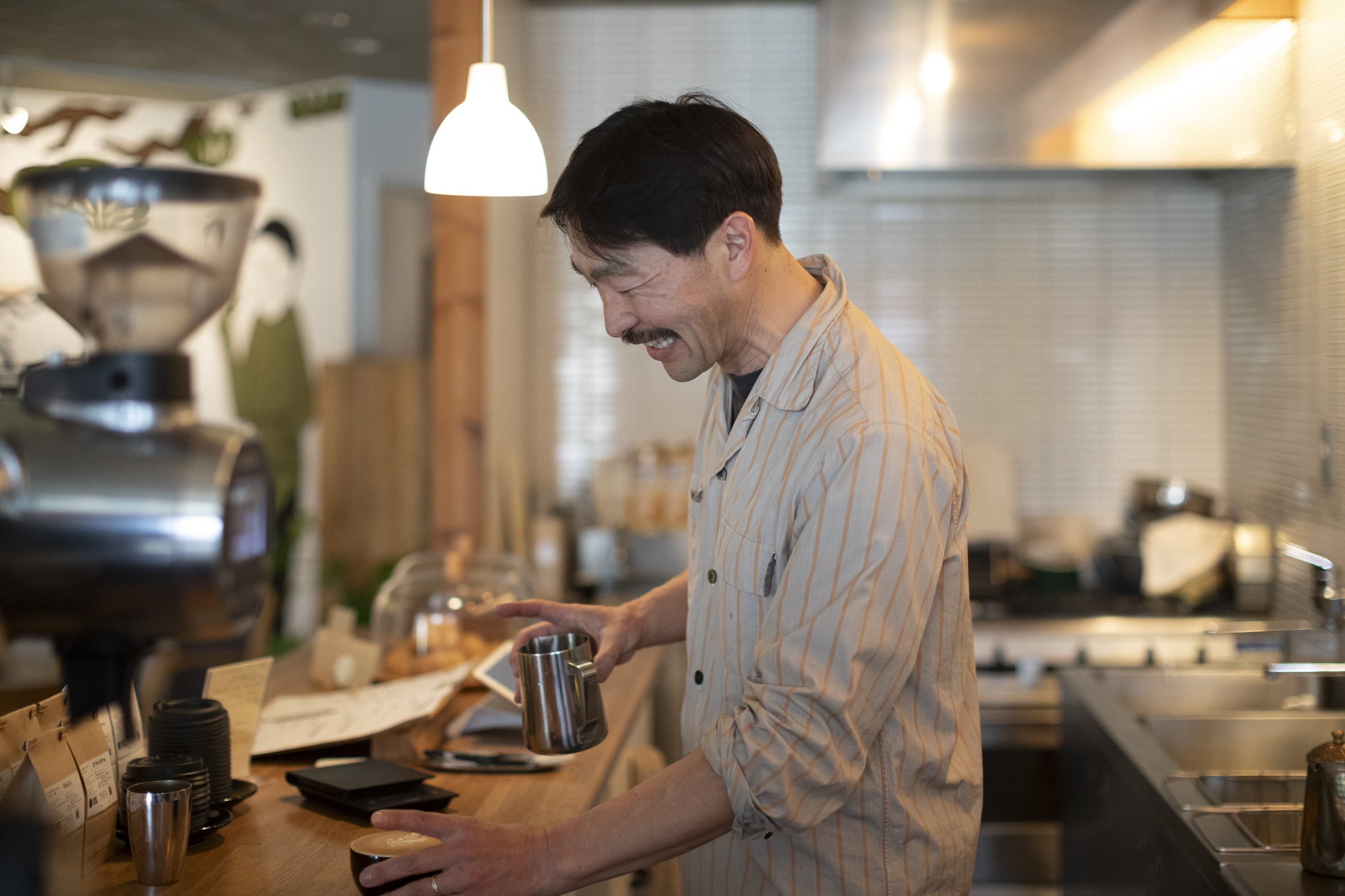 元々、野尻湖の湖畔とかでコーヒーを淹れて自分で飲んでたのが、コーヒーを好きになるきっかけだから、自然の中でコーヒーを飲む安らぎとか心地よさみたいなものを、お店で表現したいなと思ってました。