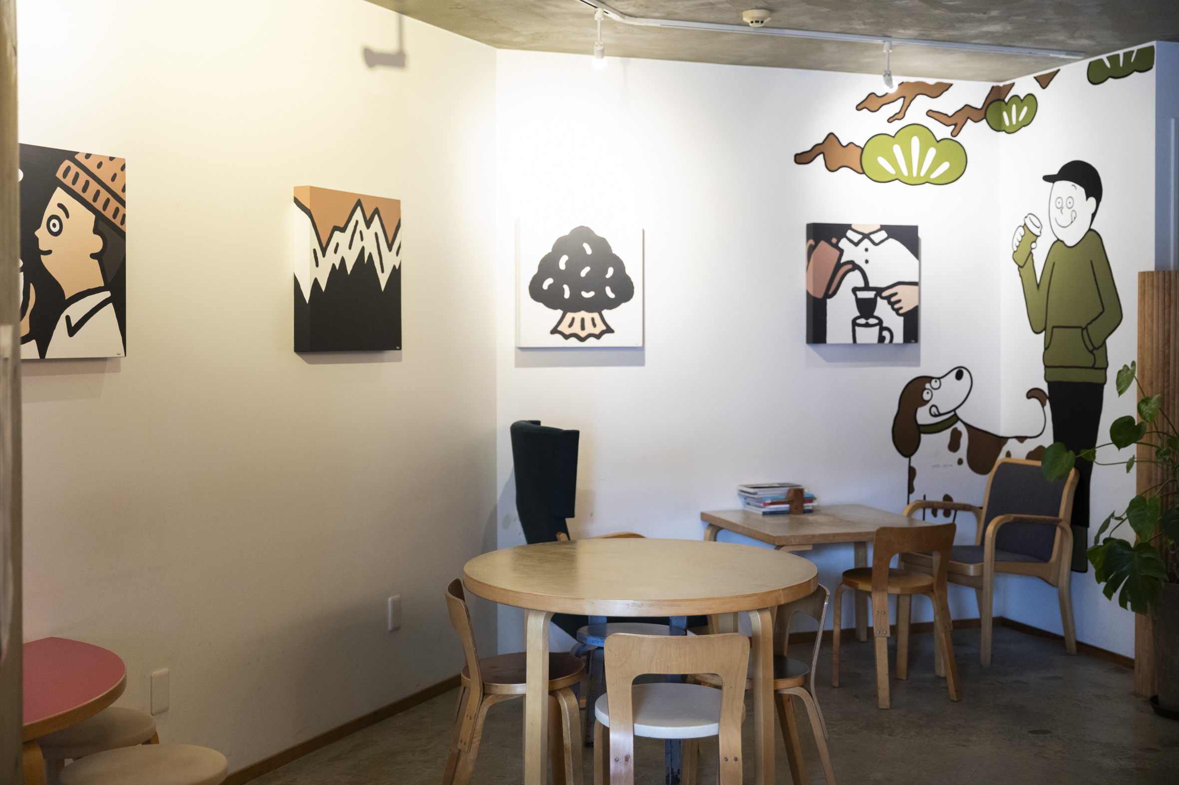 そうだね。ギャラリーに行くのってハードルが高いと思う人もいると思うんですけど、コーヒーショップでやれば、コーヒー一杯飲めば絵も観れるじゃないですか。そういう場所にしたくて。アーティストの個展も少しずつ企画してます。最近は企画できてないけどまたやっていきたいです!